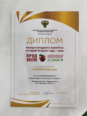 «ЭССЕН ПРОДАКШН АГ» ПОЛУЧИЛ 18 ЗОЛОТЫХ МЕДАЛЕЙ И ГРАН-ПРИ НА КОНКУРСЕ «ЛУЧШИЙ ПРОДУКТ – 2026» В РАМКАХ ВЫСТАВКИ «ПРОДЭКСПО 2026»
