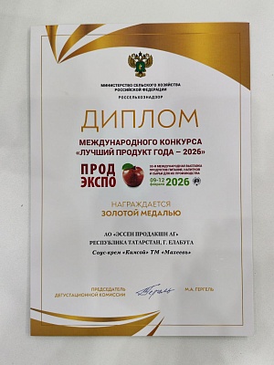 «ЭССЕН ПРОДАКШН АГ» ПОЛУЧИЛ 18 ЗОЛОТЫХ МЕДАЛЕЙ И ГРАН-ПРИ НА КОНКУРСЕ «ЛУЧШИЙ ПРОДУКТ – 2026» В РАМКАХ ВЫСТАВКИ «ПРОДЭКСПО 2026»